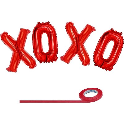 4E's Novelty 16” XOXO Balloons – Red Foil Valentine Party Balloons with Ribbon & Straw Included