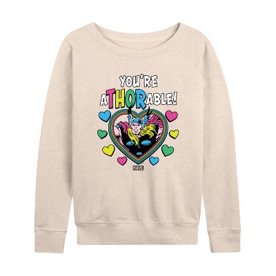 Women's - Marvel - Thor Valentine You're Athorable Lightweight French Terry Wide Neck Long Sleeve Graphic Shirt