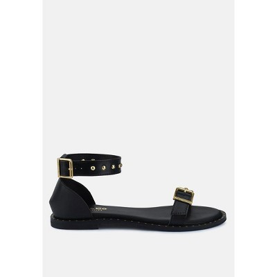 Berness Women's Kallen Vegan Leather Slide Sandals with Metallic Buckle Accent