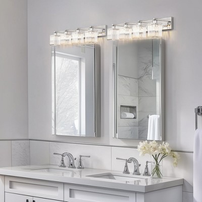 YANSUN 32 in. 4-Light Square Chrome LED Vanity Light with Crystal Shade for Mirror
