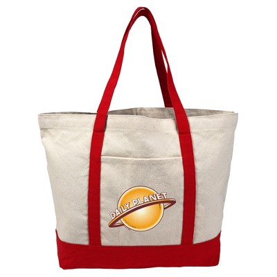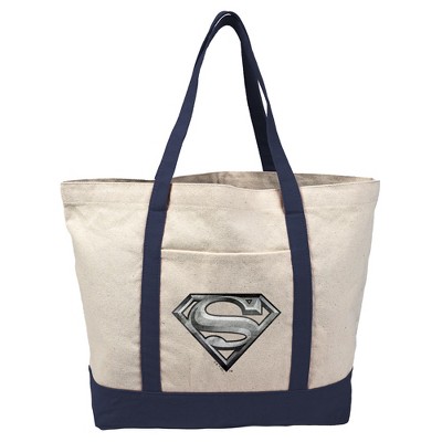 Superman Bizarro Shield Logo Canvas Tote Bag With External Pocket, Reusable Shoulder Bag for Shopping, School, Beach, Royal