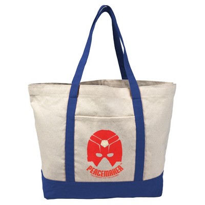 Peacemaker Splatter Helmet Icon Canvas Tote Bag With External Pocket, Reusable Shoulder Bag for Shopping, School, Beach, Royal