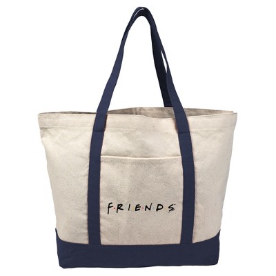 Friends Logo Canvas Tote Bag With External Pocket, Reusable Shoulder Bag for Shopping, School, Beach, Navy