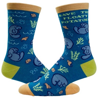 Crazy Dog Women's Save The Floaty Potatoes Socks Funny Manatee Ocean Novelty Graphic Footwear