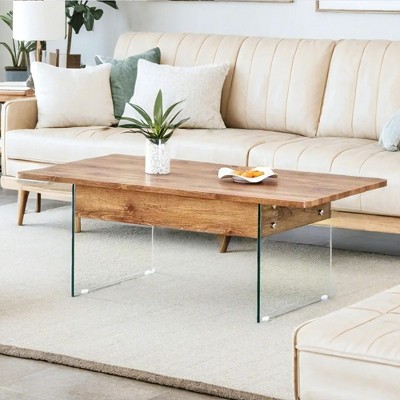- glass table top wood base
