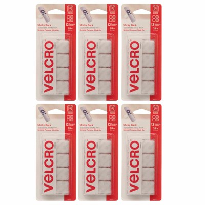 VELCRO® Sticky Back™ Square Fasteners, 7/8", White, 12 Per Pack, 6 Packs
