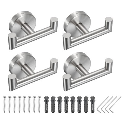 Unique Bargains Bathroom Adhesive Hooks Silver Tone 2 Pcs