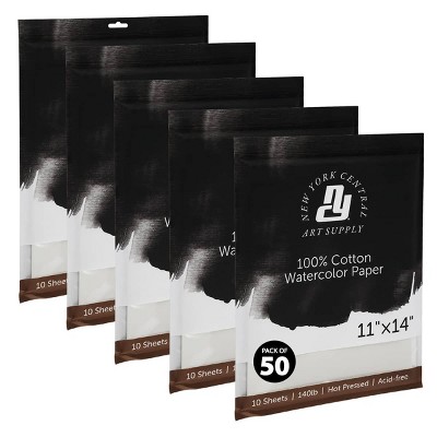New York Central Watercolor Paper - 11x14" - 50 Sheets, 140 lb. Hot Press - 100% Cotton, Acid-Free, Archival Quality, Bright White Watercolor Paper
