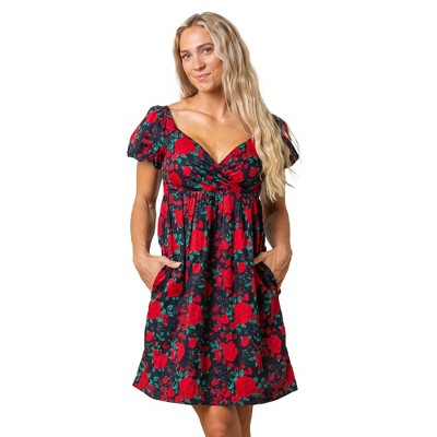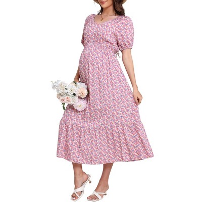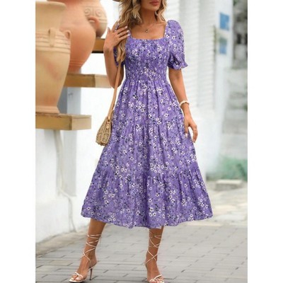 Women's Floral Puff Sleeve Tiered Dress Square Neck A Line Spring Midi Dresses
