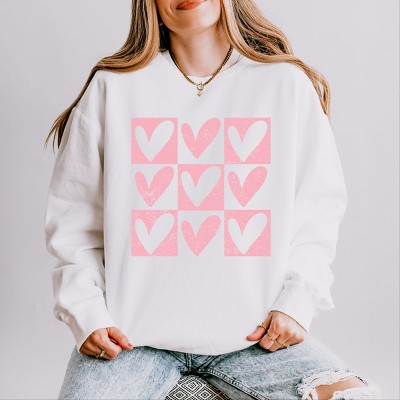 Pink Heart Checkered Chart - Women's Lightweight Garment Dyed Sweatshirt