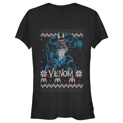 Juniors Womens Marvel Ugly Christmas Venom Pose T-Shirt