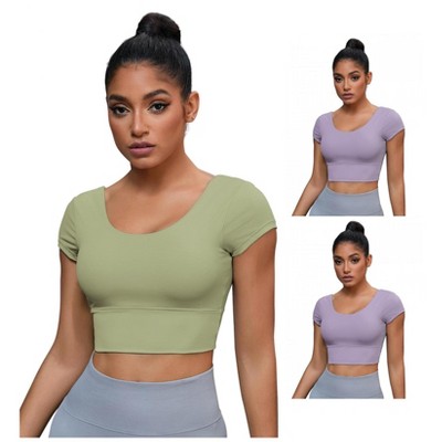 INSPIRE CHIC 3 Packs Women's U Neck Short Sleeve Deep V Back Shapewear Workout Tank Tops with Bulit in Bra