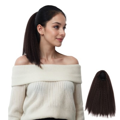 Alilang 12-Inch Yaki Straight Ponytail Extension Fluffy Thick Drawstring Synthetic Hairpiece with Adjustable Clips for Women