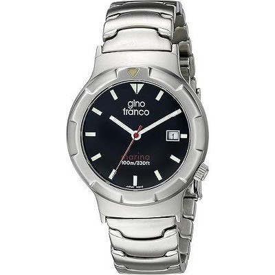 Gino Franco Men's Marina Round Black Dial Stainless Steel Bracelet Watch