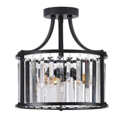 DORESshop 12.4 in. 3-Light Matte Black Semi-Flush Mount Ceiling Light with Crystal Accents, E12 Base, No Bulbs Included