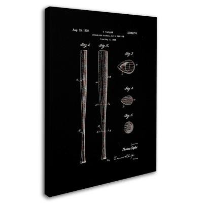 Trademark Fine Art -Claire Doherty 'Baseball Bat Patent 1939 Black' Canvas Art