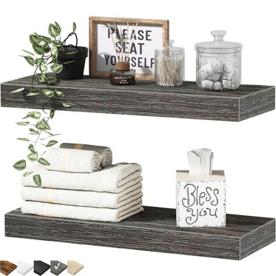 SEVOBAL 16 inch Decorative Wall Shelf Floating Set of 2 Wall Mounted Shelves for Farmhouse Bathroom Storage, Gray, 15.7"*6.7"*1.5"