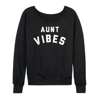 Women's - Instant Message - Vibes Tired Mom Lightweight French Terry Wide Neck Long Sleeve Graphic Shirt