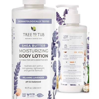 Tree To Tub Lavender Shea Butter Body Lotion for Dry Skin - Moisturizing Sensitive Skin Lotion for Women & Men, Body Moisturizer Organic Cocoa Butter