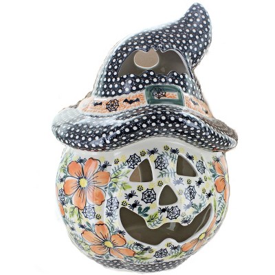 Blue Rose Polish Pottery 510 Vena Large Scarecrow Pumpkin Luminary
