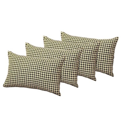 HomeRoots Set of Four 12" X 20" Yellow and Black Houndstooth Fabric Lumbar Throw Pillows