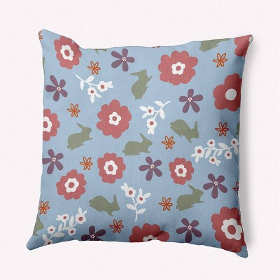 16"x16" Flowery Love with Easter Bunnies Square Throw Pillow Light Blue - e by design: Indoor Decorative Accent
