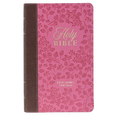 KJV Holy Bible, Giant Print Standard Size Faux Leather Red Letter Edition - Thumb Index & Ribbon Marker, King James Version, Brown/Pink Berry