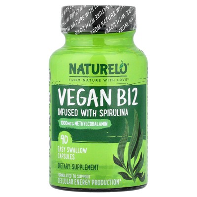 NATURELO Vegan B12 Infused with Spirulina, 90 Easy Swallow Capsules