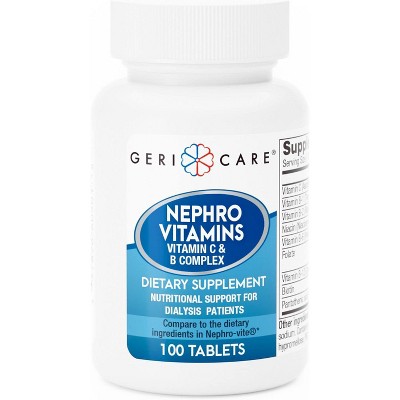 GeriCare Nephro Vitamin C & B Complex Tablets for Kidney Health, Energy Support, and Essential Nutrition 100 Count