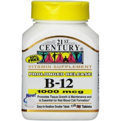 21st Century Vitamin B-12 1000 mcg Prolonged Release Tablets, Supports Energy Metabolism, 110 Count