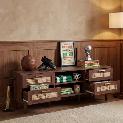 CAVINAS TV Stand Rattan Farmhouse TV Stand for TVs up to 75" Entertainment Center Media Console
