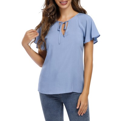Coolmee Womens Tops Dressy Casual Blouses Short Ruffle Sleeve Tie V Neck Cute Summer Shirts