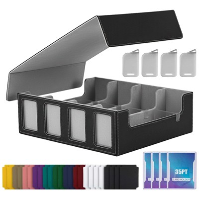 Itopfox trading card storage case 2400 card capacity with removable lid commander display 24 dividers 4 stoppers black grey