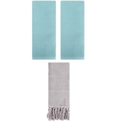 REGALWOVEN 3 Packs Cotton Soft Absorbent Tassels and Waffle Hand Towel