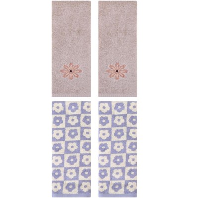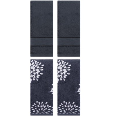 REGALWOVEN 4 Pcs Cotton Soft Absorbent Floral Pattern Hand Towel