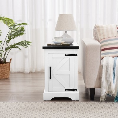 Farmhouse End Table with Storage, Side Table with Charging Station and USB Ports for Living Room