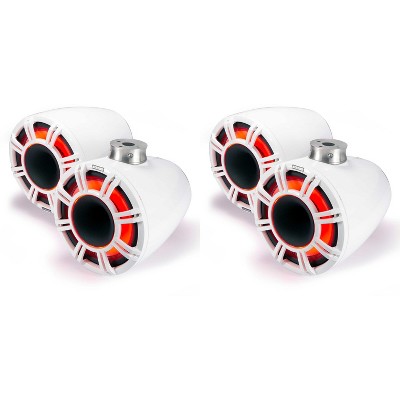 Kicker Marine 4 Ch Amp & ( 2 pair ) 6.5" LED KMXL White Tower Speaker Audio Upgrade ( 48KXMA500.4, 51KMTCXL65W)