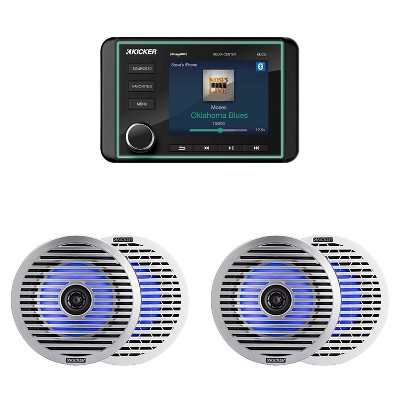 Kicker 46KMC5 Premium Marine Gauge-Style Source & (2 Pair ) 51KM614FL 6.5" Thin-Mount Marine LED Speakers bundle