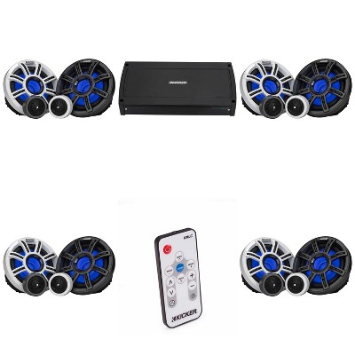 Kicker Premium Marine (2 Pair ) 8" Component Speaker and Amplifier bundle ( 51MSS84 & 48KXMA5004 )