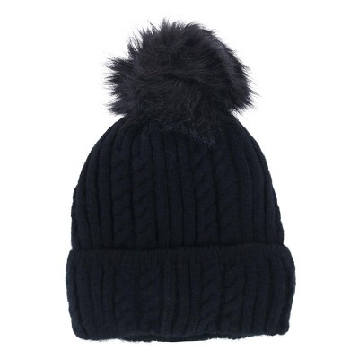 CTM Women's Metallic Shimmer Winter Knit Lined Beanie with Pom