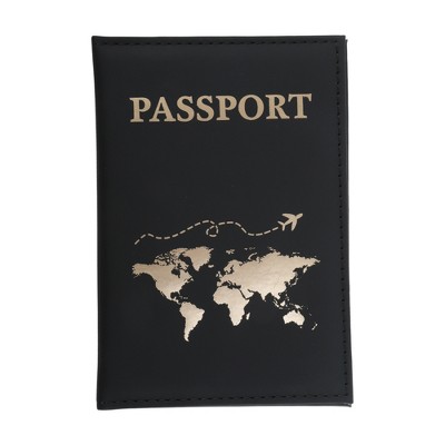 Unique Bargains Metallic Style Passport Holder Black Gray 1 Pc