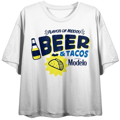 Modelo Flavor of Mexico, Beer & Tacos font, Logo on white Adult Crop Tee