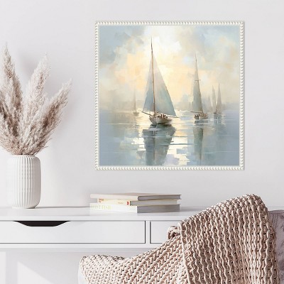 Kate and Laurel Rhythmic Lines l Framed Canvas by Nikita Jariwala, 28x38, White