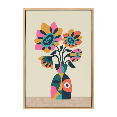 23" x 33" Sylvie Mid-Century Modern Sunflowers Framed Canvas Natural - Kate & Laurel All Things Decor