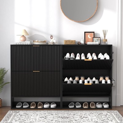 ChicFurnit Bathroom Storage Cabinet Modern Wall Mounted Medicine Cabinet with Mirror and Towel Bar for Bathroom Use, Black, 39.37"*20.47"*7.28"