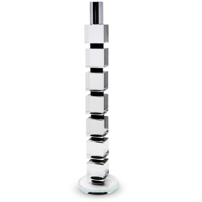 HomeRoots 15" Silver Clear And Black Crystal Tabletop Taper Candlestick