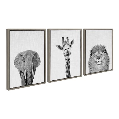 Kate and Laurel Sylvie Elephant Giraffe and Lion Framed Canvas by Simon Te of Tai Prints