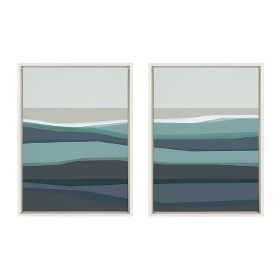 Kate and Laurel Sylvie Abstract Teal Beach Horizon Left and Right Framed Canvas by The Creative Bunch Studio, 2 Piece 18x24, White