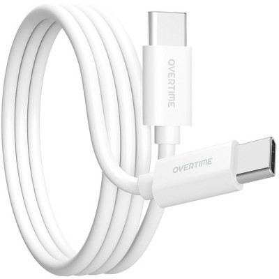 Overtime Certified USB-C to USB-C 6ft cable, Fast Charging & Data Transfer, White