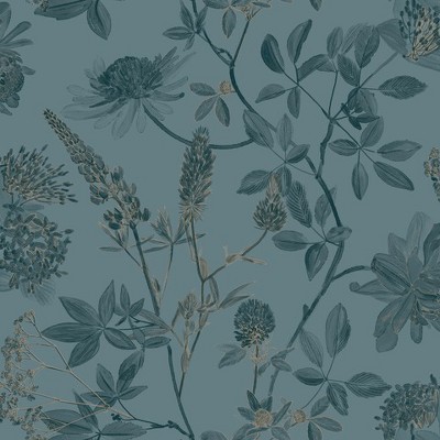 RoomMates Zen Dahlia Blue Peel and Stick Wallpaper: Removable Vinyl Wall Mural, Botanical Floral, 28.18 Sq Ft Coverage